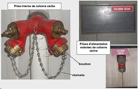 Les colonnes sèches sont des tuyauteries fixes et rigides installées dans les établissements comportant des risques importants dont le plancher bas du niveau le plus haut accessible au public est situé à plus de 18m du niveau le plus haut de la voie accessible aux engins des services de secours et de lutte contre l’incendie.