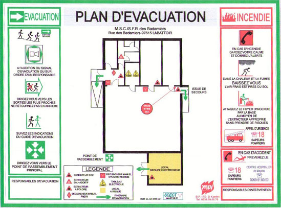 Un plan schématique sous forme de pancarte inaltérable doit être apposé à chaque entrée de bâtiment de l’établissement pour faciliter l’intervention des pompiers.