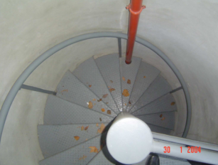 - Escalier protégé, d’accès facile pour les secours venant de l’extérieur, qui dessert tous les niveaux et comporte en partie haute un accès direct sur l’extérieur. Ces tours sont munies de colonnes sèches ou en charges.