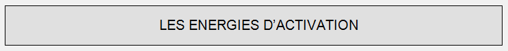 UNE ENERGIE D'ACTIVATION - L’énergie nécessaire au démarrage de la réaction chimique, elle est apportée par une source d’origine thermique, chimique, biologique, mécanique ou électrique.