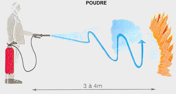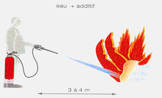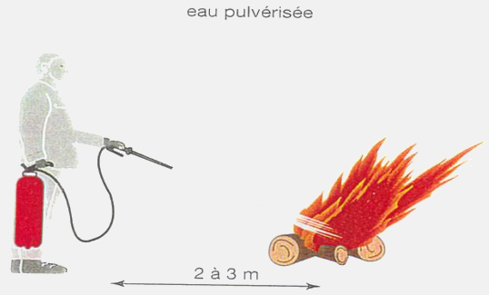 5. Attaquer le feu à la base des flammes et à la distance préconisée pour l’agent extincteur utilisé.
