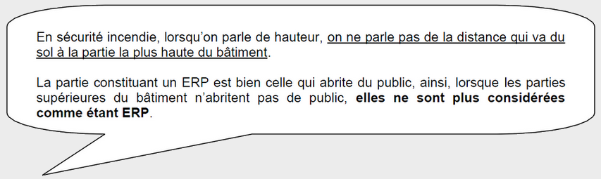Du plancher bas (sol) du dernier niveau le plus haut accessible au public depuis le niveau le plus haut (sol) accessible aux engins des services de secours.